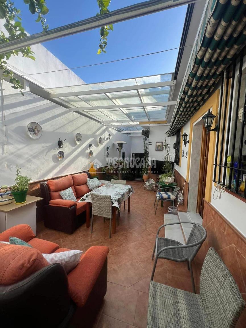 Se trata de una vivienda de 145m² con patio central con piscina, porche con solarium, 3 habitaciones, cocina y baño.